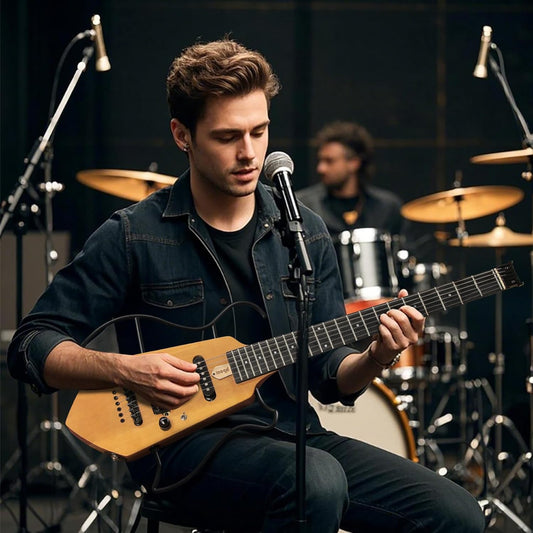 • Leego Compact Electric Guitar, Small Lightweight Headless Guitar for Travel and Practice, Portable Solid Body Easy Assemble Stands with Gig Bag, Natural