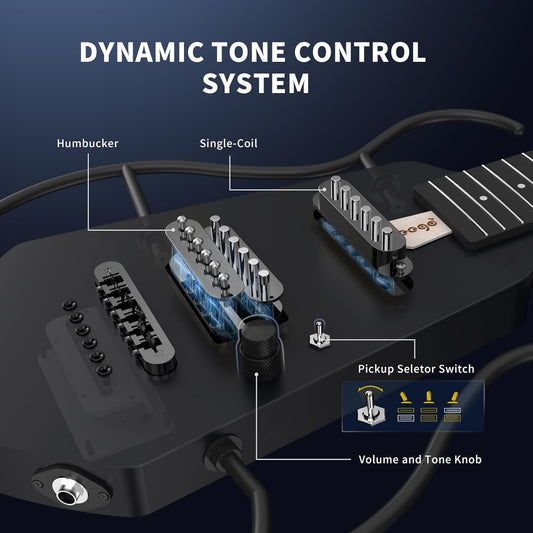 • Leego Compact Electric Guitar, Small Lightweight Headless Guitar for Travel and Practice, Portable Solid Body Easy Assemble Stands with Gig Bag, Black