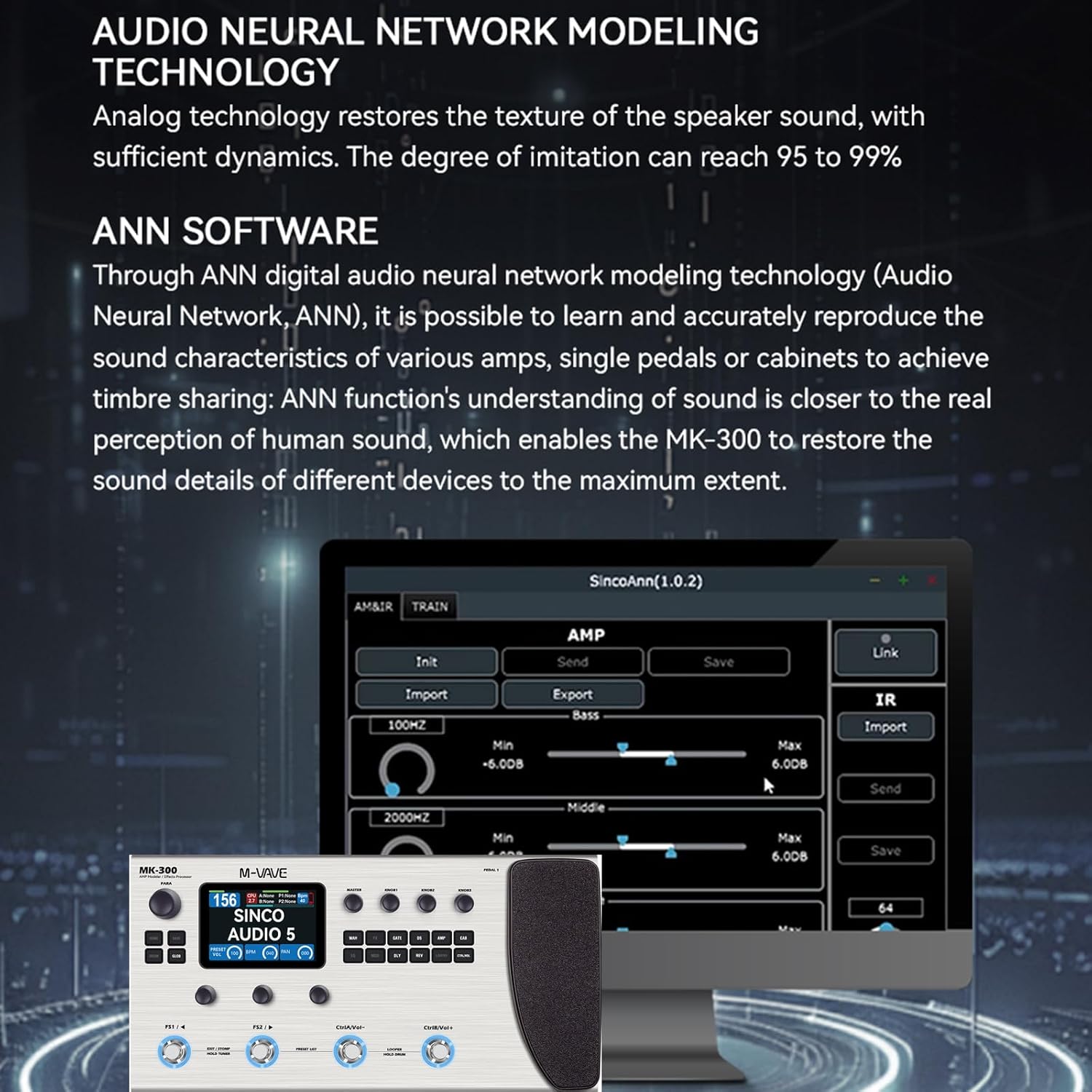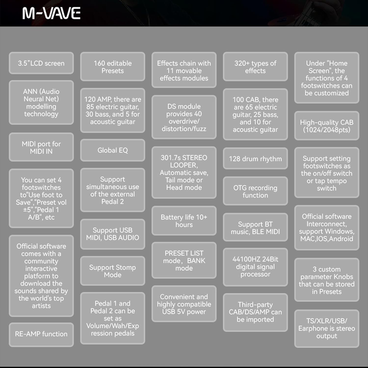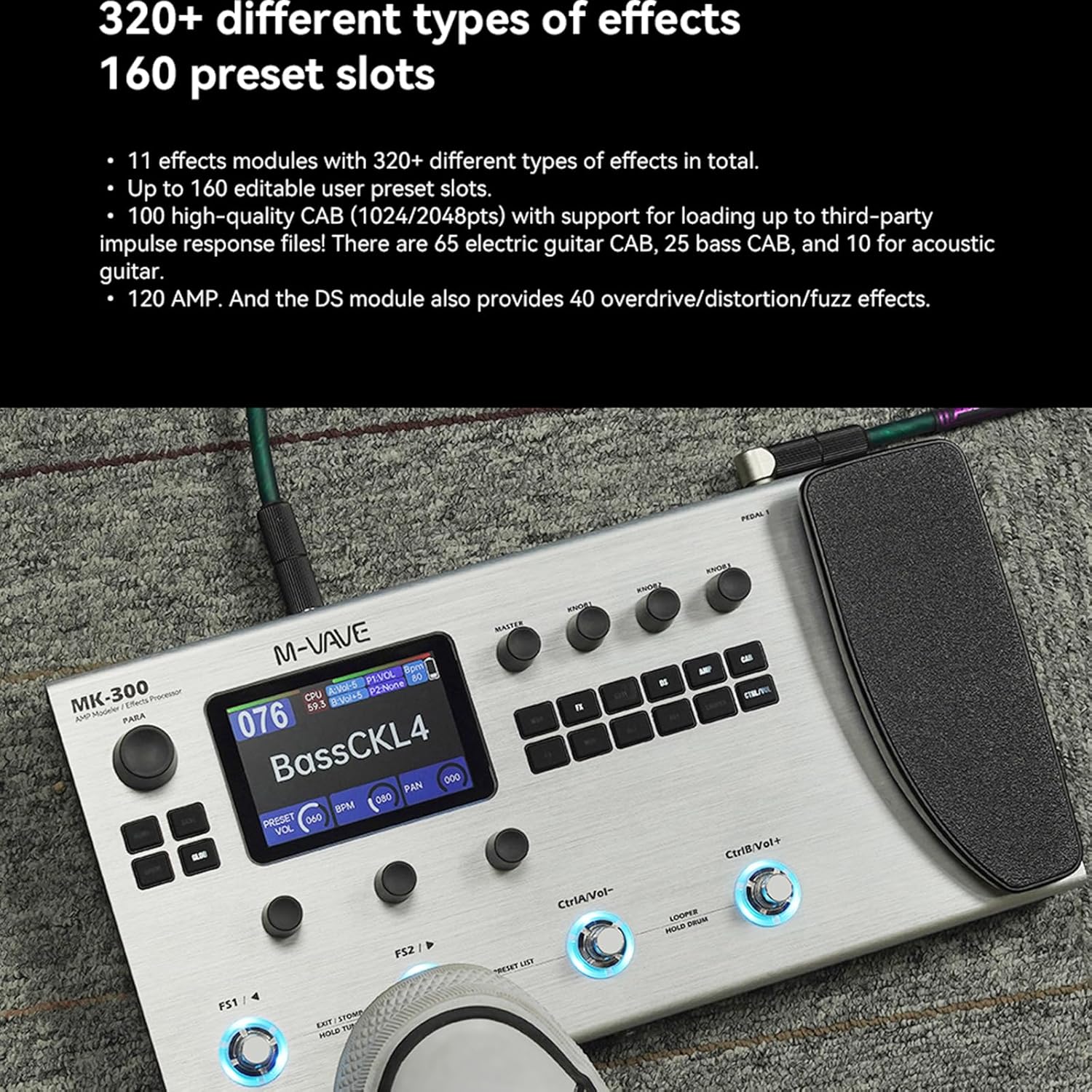 M-VAVE MK-300 Guitar/Bass Multi-Effects Processor TANK-G Pedal Pro Max Version Neural Network Modeling 320+ Effects 160 Presets